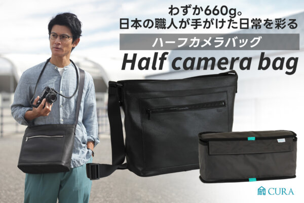 2つの異なる表情を持つ新しいコンセプトの「ハーフカメラバッグ」。ジッパーを開けたままでも使用できる設計で、シャッターチャンスを逃しません。日常とカメラ収納を半分ずつにし、660gという軽量さと高品質な作りを両立しました。バッグには「蔵ボックス」と名付けられたインナーボックスが付属しています。