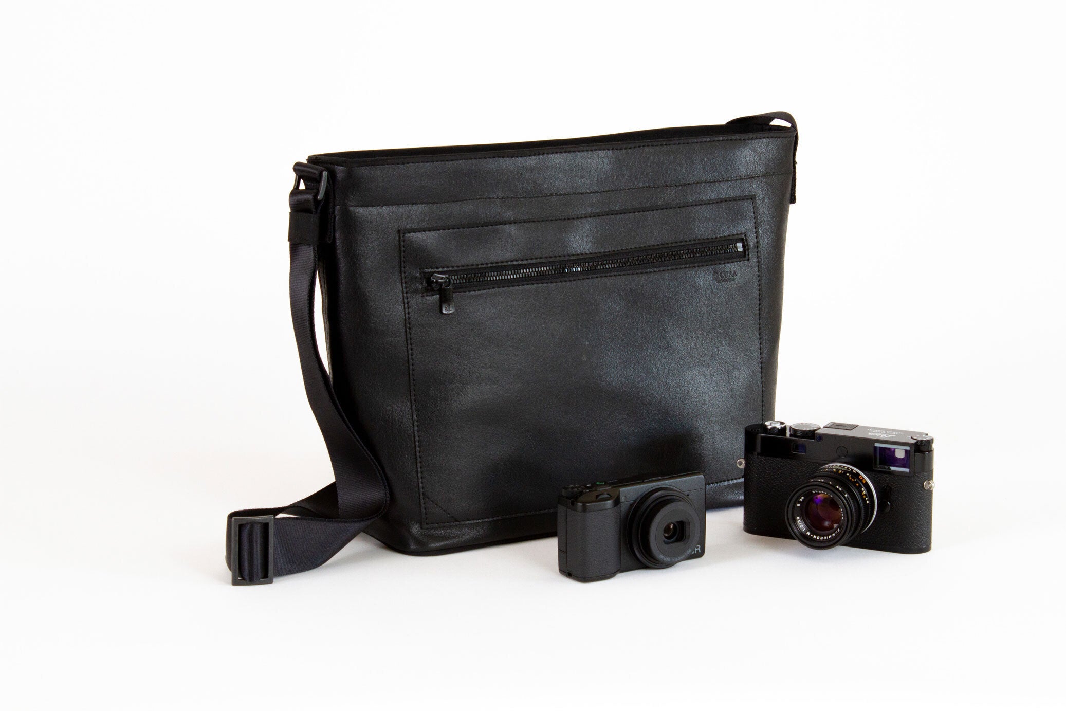 ファスナーを配したカジュアルな表面と、金具を一切排したカメラ面を持つリバーシブルなデザイン。カメラ面はカメラと一緒に肩から提げた際に、バッグの金具がカメラ本体に接触して傷をつけるリスクを排除するという、細やかな配慮を徹底しました。